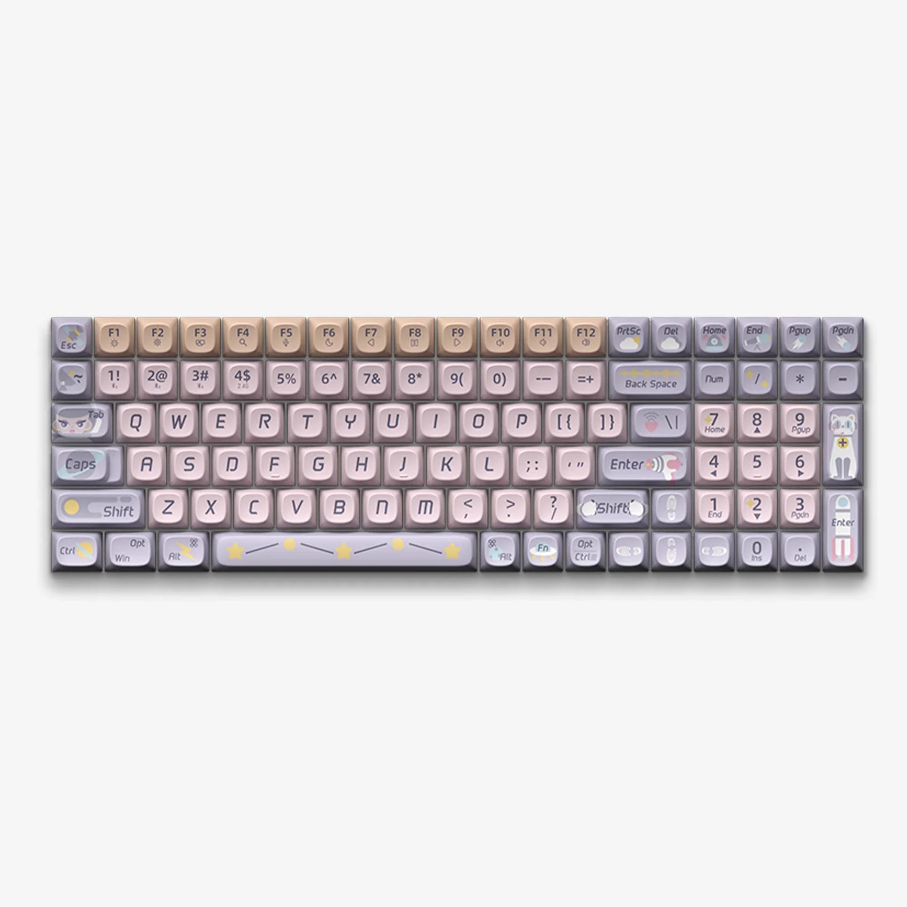 Born in space and revered as the protector of the metaverse, Star Lady combines stunning beauty with formidable intellect. She stands as a vigilant keeper of space civilization, wielding cutting-edge interstellar technology. Sworn to maintain a perfect balance between the virtual and real worlds within the metaverse, Star Lady embodies the fusion of charming girlish hues and sophisticated, high-tech color schemes. This design encapsulates Lofree's signature elegance and technological flair, bringing an otherworldly elegance to your daily interactions.